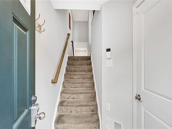 Welcome to this lovingly maintained townhome in the sought-after gated community of The Point at Adams Ridge. Perched above Cranberry and Adams Twp, this community is full of amenities. Iron balusters lead you to the main floor, where vinyl floors expand the space. Three front-facing windows bring natural light into the family room, which features a ceiling fan and whole-house speakers. The eat-in kitchen boasts a large center island, stainless steel appliances, upgraded cabinetry, granite countertops, recessed lighting, and a pendant light. A French door opens to a rear deck. A convenient powder room is also on the main level. Upstairs, you'll find a laundry area and three spacious bedrooms. The primary suite offers a large walk-in closet, a double bowl vanity, a separate shower, and a soaker tub. The finished game room walks out to the lower-level deck. HOA amenities include two pools, a car wash, walking trails, a clubhouse with a gym, indoor basketball courts, and a theater room.
