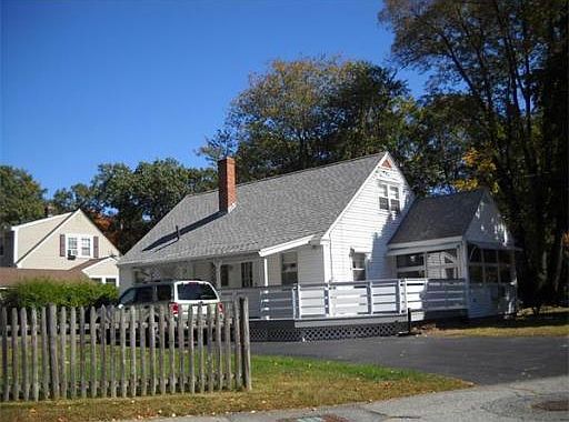 PRICE REDUCED - QUICK CLOSING POSSIBLE - EASY TO SHOW. Well maintained cape on corner lot - 3 or 4 bedrooms (downstairs den can be used as 4th), large open living rm/dining rm with loads of natural light, spacious eat in kitchen, fully applianced. Gas range, but could be converted to electric. Hardwood flooring under carpeting in living/dining rm, assumed to be under carpeting in other rooms. Many built-ins in both upstairs bedrooms, with plenty of storage in eaves. Ceramic tile flooring in bathroom. Super-clean basement can be finished as you desire. Updated electrical panel and circuit breakers, recent roof, care-free vinyl siding, nice wraparound deck and oversized storage shed for outdoor equipment. Corner lot and conveniently located near shopping.