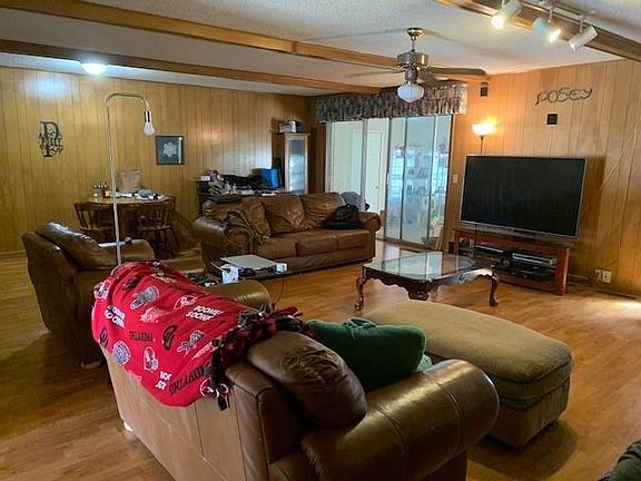 Great opportunity in Kingfisher, Oklahoma! Large living room with hardwood flooring and a wood burning fireplace. Large kitchen with plenty of cabinets for extra storage. Three spacious bedrooms with two baths. Master bedroom is located opposite of the other bedrooms. Enclosed back porch offers a wonderful sunroom to enjoy year-round. Huge backyard with a 10 x 12 workshop. Come see!