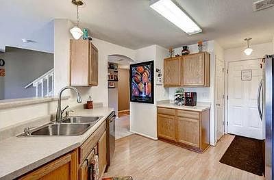 Very well maintained townhouse near Buckley Air Force Base. Open and bright kitchen, dining and living area with main floor half bath. Appliances, faucets and flooring updated in 2014. Two bedrooms, 2 baths, and laundry upstairs. Washer and Dryer are included. Vaulted ceilings in the spacious master suite, master bath and walk-in closets. Private small deck off the back with access to walking paths and trails. Nice community area with amenities that include indoor heated pool, fitness facility, tennis courts, hot tub and sauna. HOA fees include water, sewer, trash, exterior maintenance and snow removal.
