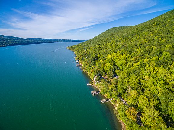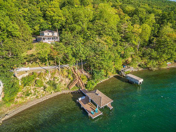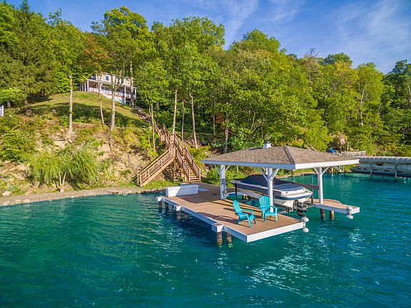 RARE WATERFRONT PROPERTY WITH INCREDIBLE PRIVACY IN A NATURE SETTING! Enjoy the lake lifestyle with 100' of shale beach with a permanent dock, boat station and 3.27 secluded acres with breathtaking panoramic lake views! Stunning newer architect designed house with a picturesque open front porch with dramatic lake views! Upon entering you're greeted with an open great room with a white & bright eat-in kitchen with a center island that is open to the dining area with porch access and a living area with a gas stove and a wall of windows with scenic lake views! 3-4 Bedrooms & 3 full bathrooms! Finished walk-out lower level! This property is located towards the end of South Lake Rd. which is extremely private & dead-ends a few houses down for no traffic. Plus desirable afternoon sun & sunsets!