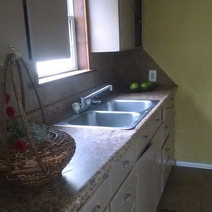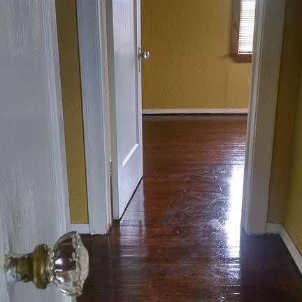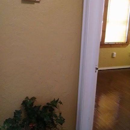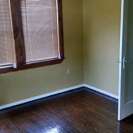 All electric roomy two bedroom home with extra large yard. Separate laundry room Original hardwood floors Ceramic tile Large front and back yard Six foot wooden privacy fence Small back patio Metal storage building Long drive for RV or extra parking
