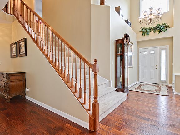 Talk about curb appeal! This private & wooded, cul-de-sac location welcomes you home with exceptional quality & style! Soaring 2 story foyer & LR, Brazilian cherry HW floors & high-end lighting are just the first upgrades that will "Wow" you! Rare first floor bedroom & full bath. Kitchen with cherry cabinets & roll out shelves, granite counters, island & SS appliances flows into the FR with gas fireplace. The Master BR spans the entire length of the house & features a vaulted ceiling & 3 closets, 2 of which are walk-in. Huge master bath with separate sinks, whirlpool tub & shower. A resort-like retreat in your own home! 3 more bedrooms up, 1 with en-suite. Ideal location with a 42 foot deck & fully fenced yard that backs to the 265 acre Hoffman Park. Walking trails, fishing pier & dog park! Close to train & new Splash Pad. This won't last long! Schedule a visit today!
