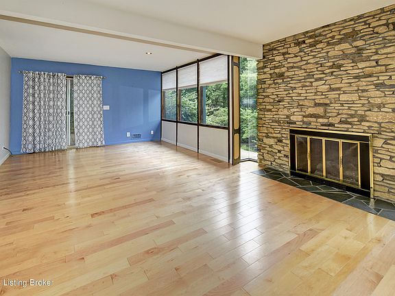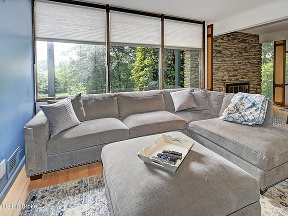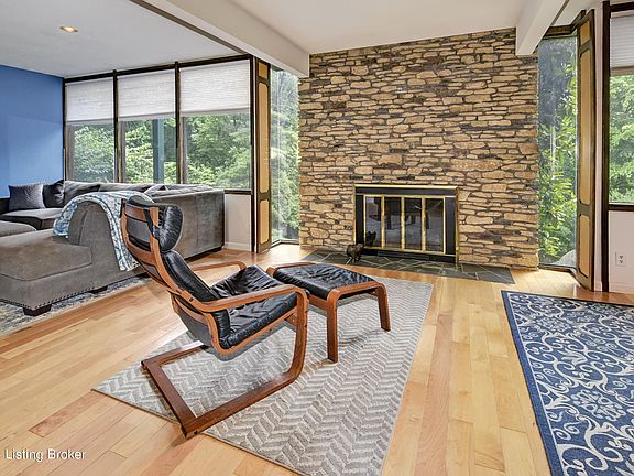 overlooking Joe Creason Park. 5 Bedrooms, 3 Full Baths, walk-out lower level. The first floor has hardwood floors, a stone fireplace, lots of windows with tree views, and sliding doors to decks on each side of the house. The kitchen is remodeled. It has loads of Amish cabinets with quartz countertops, a large center island with granite countertops, and stainless-steel appliances. The living room is open to the dining room which is open to the kitchen. An office/guest room with built-in cabinets and a Murphy bed that folds down from the bookshelves makes this a great first floor guest room. A full bath and a laundry room are also on the main floor. Upstairs the primary bedroom has a stone fireplace, an ensuite bath, a walk-in closet and a sliding door to the screened in porch. The 2nd floor also has 3 additional bedrooms, all with porch access and a remodeled full bath. The walk out lower level has a finished family room with a stone fireplace, an unfinished storage room and 2 car tandem garage. There is a fenced in rear yard and a private driveway that provides additional access to and from Trevilian Way.
