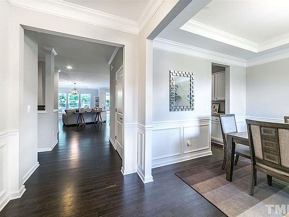 Wooded Lot w/ 1st Floor In LawSuite in amazing Apex Location shows like a model!Owner Suite w/ Sitting Area, Whirlpool Tub, Sep Glass Shower, & Dual Vanities w/ Granite Counter Top! Gourmet Kitchen with Granite Counter Tops, SS Appliances, & huge Island flows into FamilyRoom w/ FP and sunny Breakfast Nook! Butler's Pantry leads to Formal Dining Room w/ Wainscotting is perfect for entertaining! Mud Rm off convenient 2 Car Garage has Built In Desk & Storage! Loft area could be perfect family retreat/office!