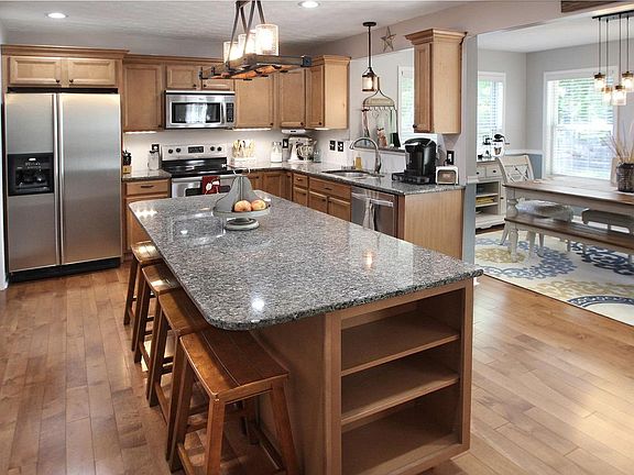 - RoomKitchenFeatures: Kitchen Island, Eat-in Kitchen, Wood Floor, Marble/Granite/Slate, Wood Cabinets, Counter Bar