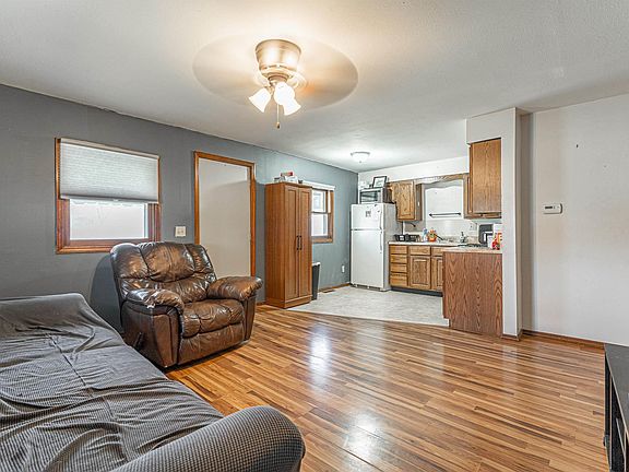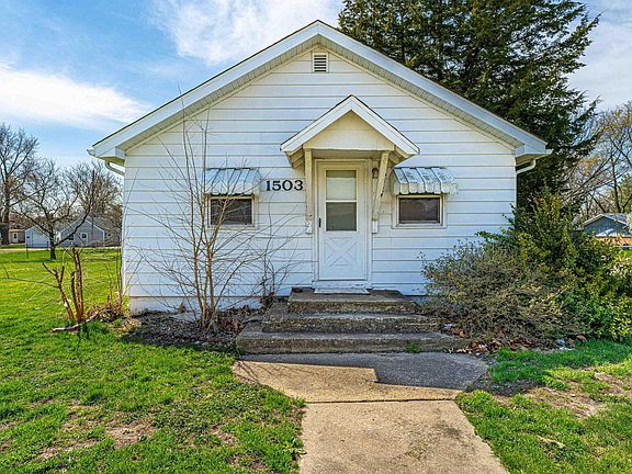 Situated on an expansive 100X150 fenced corner lot close to historic downtown Lincoln, Illinois, you will find this adorable and efficient two bedroom aluminum sided bungalow style home -- own this well maintained move-in ready gem for less than rent! Home features an open living/kitchen concept -- living room features nice floor space -- kitchen boasts ample space for a table and chairs and range/oven as well as refrigerator to remain, two comfortable bedrooms (access to enclosed back porch can be found in one bedroom), full hall bath, and a great enclosed back porch. Property also features a full basement (exterior access only), 2+ car detached garage with rear alley access and a newer metal roof, updated Goodman furnace -- the list goes on! All appliances to remain with property upon settlement for new owner(s) including washer and dryer. Affordably priced for a quick sale! Property being sold as presented.