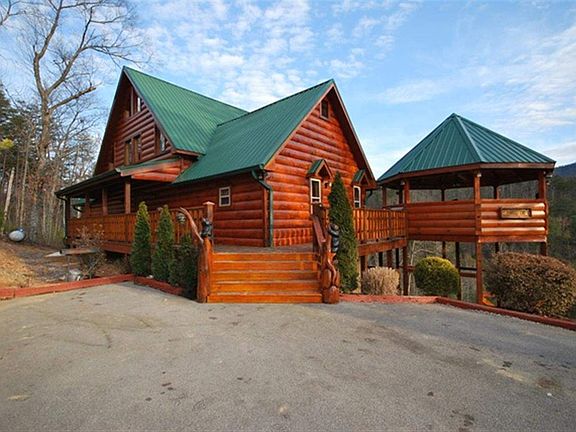 Majestic, private, beautiful, 4 BD/5 BA, 3,100+ sq ft log-style home located in scenic Wears Valley. Made over $54,000 in rental income for 2012, and over $61,000 in rental income for 2013. Located at the end of a cul-de-sac, this home has spectacular countryside and mountain views. Has a large living/dining room combination, complete with a masonry gas fireplace, as well as a full kitchen. All of the Bedroom Suites in this home have their own separate Private Bathroom and Private Closet space, for maximum privacy and comfort. Has a Loft area, complete w/ a Recreation Room and Bathroom, along with a large Lower Level Great Room, which combines a Den and 2nd Recreation Room into an area great for entertainment and relaxation. Lower Level Great Room also has its own masonry gas fireplace. Has two deck levels, with a Main Deck level also containing a Gazebo area great for entertaining guests, as well as a Lower Level Deck area that opens up a separate lower level viewing area, that is great for viewing the scenery or just relaxing. Also has a surfaced drive, with sufficient room for parking. Ideal for family get-togethers, entertaining friends and guests, or even business meetings, trips, or other special events. Located in scenic Wears Valley; only minutes away from the Great Smoky Mtns. National Park, as well as Pigeon Forge, Dollywood, and other area attractions. A truly majestic home with great countryside views!