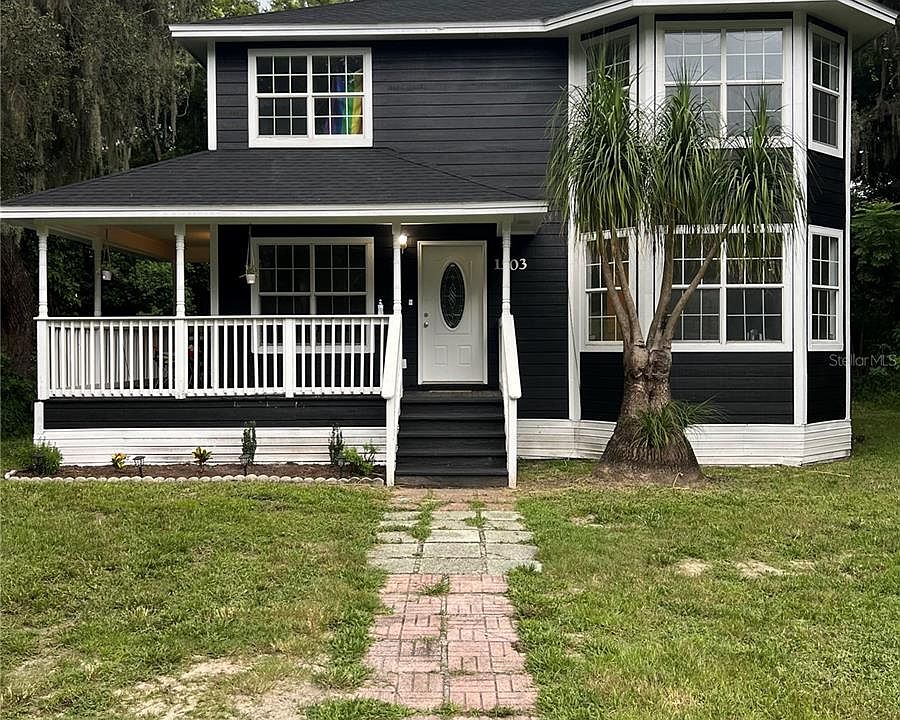 Take a look at this Jim Walter Victorian Style House, they no longer make them and you would be the proud tenant of a beautiful story and community. Updated flooring downstair, professionally cleaned carpets and updated ceiling fans. LOCATION is key! If you are looking to be 9 minutes away from The Villages area at Brownwood, 5 minutes away from Publix, Walmart, Fast Food Restaurant, 2 minutes from AMF Bowling, 20 minutes away from Leesburg Mall, Lake Sumter Landing, Lady Lake and it's right on the Fruitland Park city limit, plus so much more. You have to see all the beautiful features, wrap around porch to the left of the home, beautiful modern outside paint done 2024, New 2023 Roof, inside vinyl flooring all through out the first floor for an easy clean, carpet only on the stairs and in the 3 bedrooms for a cozy feel. Plenty of storage room under the stair and attic, 2 and a half bathrooms, laundry with washer, dryer included, beautiful hexagon window feature downstairs and in master bedroom, walk in closet in master bath, not to mention the room itself is very spacious. The home is located on .27 acres and is surrounded by beautiful trees and flowers making it a private and serene space. It has been the perfect spot for entertaining and BBQ. You have to come see this gem, schedule your private showing today!