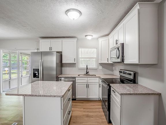 This home features a spacious open floorplan design, with custom cabinetry, crown molding, brand-new stainless-steel appliances, soft close cabinets, granite countertops, and island for entertaining, luxury vinyl plank flooring, and brand-new carpeting.