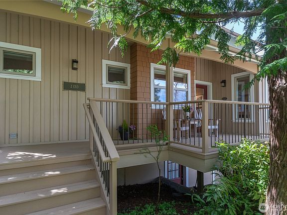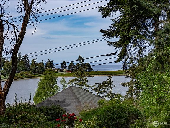 This unique detached home in the sought-after Tree House community offers stunning views of the Chinese Garden pond & the Straits beyond—visible right from your dining table! Known for smart, space-efficient designs, this home features an updated kitchen with stone backsplash & new countertops. The open-concept main floor includes a cozy propane fireplace, living/dining area & access to the beautifully maintained common space. Also on the main level: a renovated bathroom with tiled shower & a spacious primary bedroom with a walk-in closet. Upstairs, you'll find a bright workspace with a view, a second bedroom, & a full bath. The basement includes laundry & storage. Enjoy daily walks at Fort Worden as it's just across the street.
