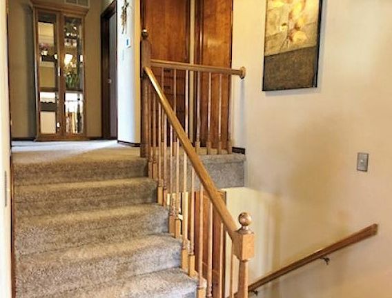 Sought After Neighborhood! This is a MUST SEE Multi-level HOME in a wonderful neighborhood just outside of town. Welcome to this inviting tri-level home featuring 3-4 bedrooms and 1.5 baths. Upon entering this home, you will find a welcoming entryway with a large living room to your right, followed by a spacious open updated kitchen/dining combo complete with stainless steel appliances and an island, lots of cabinet storage and counter space, followed by the laundry room and a half bath. Upstairs you will find 3 bedrooms and an updated full bath with a granite vanity and tile floor. Master bedroom has a walk-in closet and 2nd bedroom is used as a craft room currently (closet connects to Master closet). Lower Level you will find a warm family room complete with a gas fireplace, another bedroom, and storage. There is a sliding door at the dining area that leads to the 24x16 cedar deck that over looks the spacious backyard. No backyard neighbor! Furnace/Heatpump with Humidifer and AC new in 2010. New 22x22 CoachHouse detached garage/shed with concrete floor in 2010. An oversized attached 2 car garage and floored attic over garage for more storage space. This won't last long, make an appointment to see this Home!