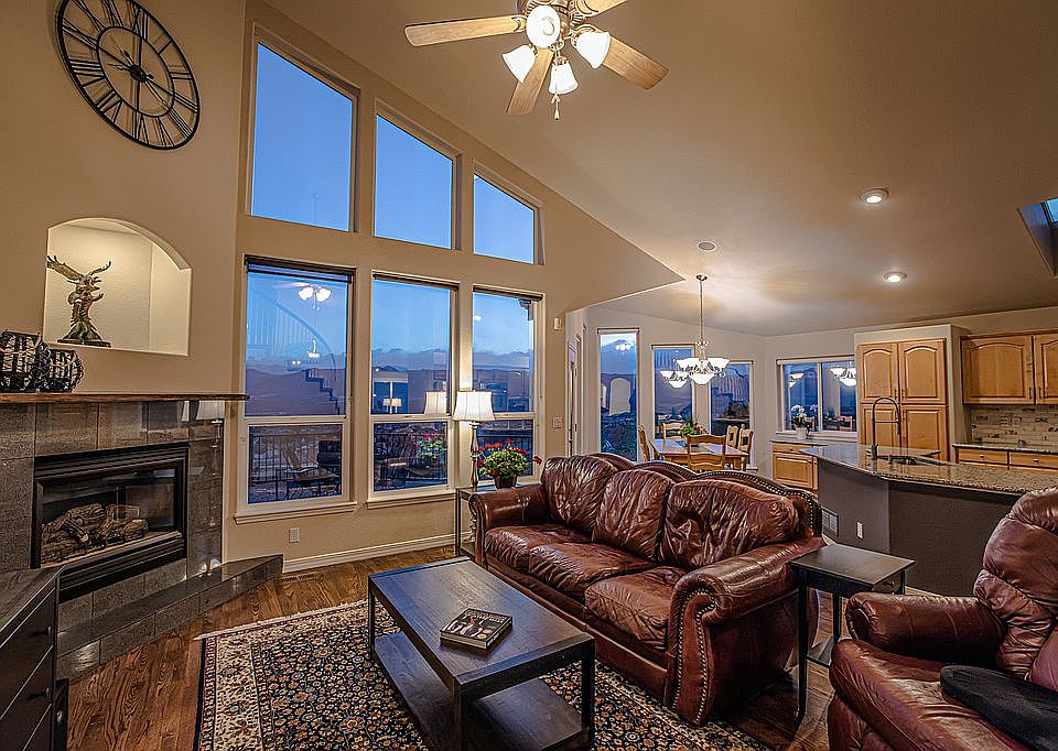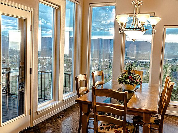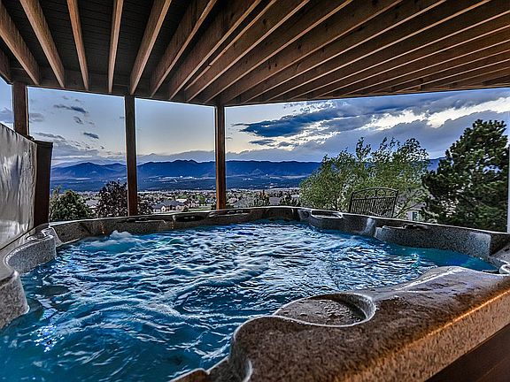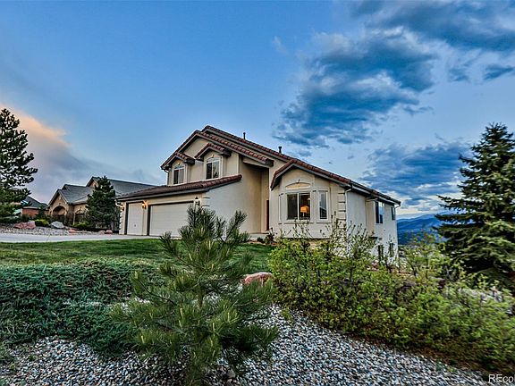 Phenomenal PANORAMIC views in a quiet cul-de-sac! Privacy abounds!! The views from this 5 bed, 4 bath treasure will truly take your breath away. Enjoy cooking and family times while watching the sunset! No other home has these panoramic views!! This home features an open floorplan and a kitchen with granite countertops, stainless steel appliances including a gas stove and double ovens. (Cabinet allowance will be given). The large outdoor patio is off the eat-in kitchen. Hardwood flooring is throughout the main level which includes a large great room with vaulted ceilings and floor to ceiling windows that flood the rooms with natural light. On the main level, escape to the large Master bedroom with a gas fireplace and a private walk-out to the deck overlooking the Front Range. Upstairs features 3 additional bedrooms and a full bath. Complete with a full, finished basement--perfect for entertaining guests, wine cellar, 5th bedroom, and office or additional storage room. Extra features: Spanish tile roof, stucco home with 2 X 6 construction, two HVAC systems, and an air conditioner! This District 20 home is just minutes from I-25 making commuting to anywhere in town a breeze! 10 mins or less to the North Gate or the Air Force Academy and close to Fox Run Regional Park and the Santa Fe Trail for outdoor activities. Shopping and entertainment are less than 5 minutes away!