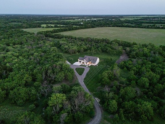 Welcome to your dream retreat! An approximate one year old custom-built retreat on 40+/- scenic acres with wildlife, privacy & outdoor living just minutes from the amenities and convenience of Derby!!! The home is an extraordinary custom-built 6-bedroom, 4.5-bath estate designed for privacy, recreation, luxury and everyday comfort. Sitting on 40+/- picturesque acres of mostly agriculturally zoned land yet surrounded a manicured lawn with app-controlled sprinkler system, this home offers it all, quiet luxury, outdoors, pasture, dense woodlands, hunting and the tranquil beauty of Pole Cat Creek. After an exhaustive search to find this wooded property, this home was intentionally built by the current owners as a peaceful getaway on the site fully surrounded by heavy mature tree cover. Save yourself the years of the searching and building process and step right in where this relocating homeowner left off with plenty of room for an outbuilding or pool. This property is a haven not just for people, but for extensive wildlife as well. Wake to the calls of native songbirds, watch wild turkey pass through, and spot deer grazing at dusk from your screened in back porch with fireplace. The private drive in builds anticipation winding through the trees maximizing the natural surroundings leading to a circle drive, spacious front porch, oversized garages and a screened-in back porch designed for entertaining. Inside, you’ll find a blend of high-end finishes in natural tones but with modern elegance and practical durability. Rich wood tones in the custom cabinetry and trim work are offset by bright, neutral walls, creating a warm yet airy feel. The kitchen features stunning quartzite countertops, double ovens and double dishwashers plus a phenomenal butler’s pantry. At the heart of the living room is a powerful 525lb high heat and and high BTU fireplace, specifically chosen to handle the wide variety of hardwoods available on the property, bringing warmth and ambiance to every season. Fireplaces in the screened porch off the main floor and in the basement rec room also provide a cozy feel to the large home. The main level offers a split bedroom plan with the primary bedroom ensuite connecting to the walk in closet, combined laundry/mudroom area off the garage and the large butler's pantry. With six spacious bedrooms (three main level, one at loft level and two in the basement) plus 4.5 bathrooms, the home easily accommodates family, guests, or multigenerational living. The fully sheet rocked attached 4-car garage provides room for equipment needed to have fun outside including 220 electric for a welder or electric vehicle! The home is provisioned for a backup generator and hot tub connection. Every detail has been crafted to support an outdoor, active lifestyle surrounded by nature’s finest. This is more than a home, it’s a way of life. Whether you're sipping coffee while listening to birdsong, exploring your wooded acres along the creek, or hosting friends for a cozy evening on the porch, this unique estate offers unmatched peace, space, and connection to nature. Don’t miss your chance to own this rare sanctuary and private oasis. Schedule your private showing today. Floor Plan available in Property Information Packet.
