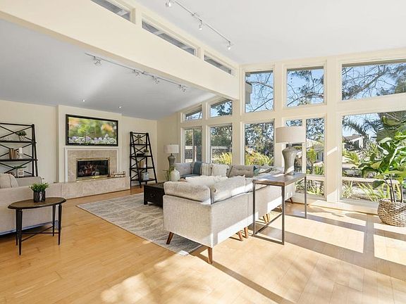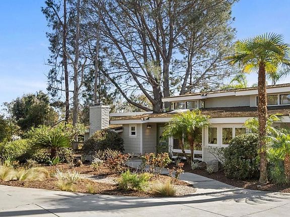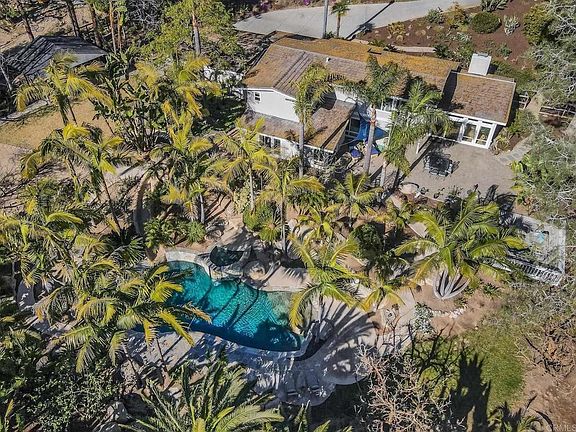 Rarely does an estate so unique come up for sale in the highly desired Sun Valley area of Del Mar. This very private property is situated on an acre, as you drive into the entrance you are surrounded by beautiful and natural low maintenance landscaping. This 5 bedroom 3 bath home delights throughout, the spectacular walls of windows in the family room welcomes an abundance of natural light. Secluded upstairs is the primary bedroom suite that features a private deck offering serenity views of the out doors. With two family rooms, living room, formal dining area, charming updated kitchen with stainless steel appliances, custom cabinets and a beautiful granite island this floor plan is flexible and enjoyable for entertaining and relaxing. Experience the true tranquility of this sophisticated "Tropical Paradise" with a graceful walk-in pool surrounded by boulders and a gorgeous spa/waterfall. Expansive areas abound throughout this property as you walk through the grounds you will come across a small orchard of citrus and fruit trees. It is only moments to the Village of Del Mar, delightful local beaches, delicious restaurants, plenty of shopping, Cedros Design District, Del Mar Library, Del Mar Race Track and close to Top Rated public and private schools.