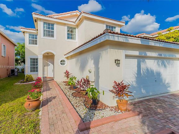 Beautiful 6 bedroom 3 bath, two story home with 2 bedrooms on first floor in the coveted community of Silver Shores in Miramar! This spacious home boasts 2 bedrooms & 3 full bathrooms on the first floor, new AC, new carpet on 2nd floor, new washer & dryer, radio/intercom throughout the whole home & patio, 2 car garage, covered & paved back patio & the home comes complete w/ALL NEW IN BOX STAINLESS STEEL KITCHEN APPLIANCES including brand new stove/oven, refrigerator, dishwasher & microwave!!! This is an amazing opportunity for any family! Enjoy sunny Florida afternoons in your low maintenance paved and covered patio! Low HOA!! This beautifully maintained gated community offers resort style amenities such as clubhouse, pool, security & so much more! This is the perfect place to call home!