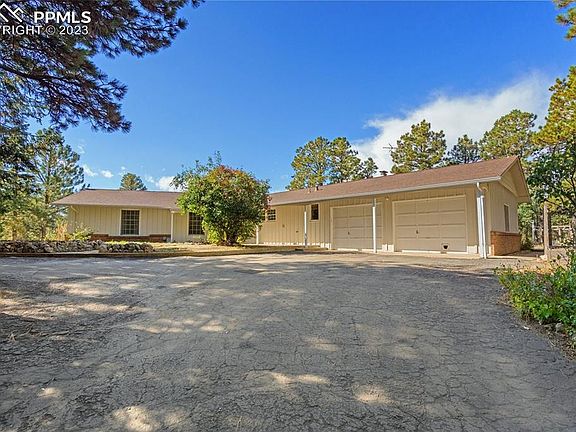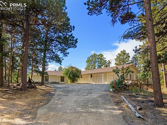 Absolutely stunning views from this peaceful hilltop haven near Fox Run Park! 5.1 acres to play on and enjoy the peaceful sounds of the birds and the breeze in the lofty pines. Take this solidly built large home and make it your canvas to design a dream life on. Bring the RV, horses, ATV's, bikes, or just your gardening tools. Whatever toys you need, there is room for everything here. Located in close in Pleasant View Estates in sought after school district 20, the house is minutes to top schools, north gate of the Air Force Academy, the crown jewel of the county park system at Fox Run, and new commercial hub of the Northgate area. Great access for commuting, whether Hwy 83, Powers, or I25. Lot's of updating opportunities to make this home a real trophy. Carpet has been removed through some of the house, so picture what new floor coverings, paint and updated / redesigned baths and kitchen could look like! There are multiple outbuildings, and even a great place for raised bed gardens and greenhouse.