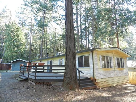 Tucked in the Beautiful Tall Evergreens of Magalia is this 2 Bedroom 2 Bath Manufactured home with a 20'X12'detached one car garage and is ready for a new owner. The entire property is fenced with a 14' wide gate. This floor plan offers a spacious living room & dining room with bay windows and built in entertaining hutch. Separate family room with built in desk w/ shelves, free standing wood stove with blower & newer slider to the large front deck. The kitchen overlooks the family room and offers a updated double oven, whirlpool dishwasher, 5 burner built in range, microwave, refrigerator and a nice 6ft' breakfast bar. The guest bath offers a tub/shower combination, solid surface vanity and newer toilet. The master bedroom is very spacious and master bath offers dual sink vanity with solid surface counters and newer toilet. The spacious utility/laundry room offers tons of cabinets, counter space, built in desk and washer/dryer. There is a 2018 Composition Roof, 2020 Vinyl Plank flooring throughout the home, 2017 Hot Water Heater, Septic cleaned 2017, Furnace updated approximately 8 years ago and now has hook ups if next owner wants to add a condenser unit. Plenty of room to park extra car, boat or RV. NO HOA fees!!!!!
