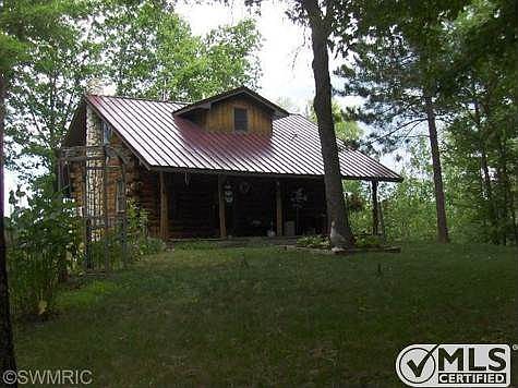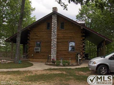 Amazing remote log home on over 67 wooded acres. Frontage on Goose-neck Pond, several outbuildings including a 28x32 Pole barn and a 21x16 shed with a basement root cellar. Groomed trails throughout. Completely surrounded by mature trees but only minutes to Big Rapids. Not a drive by. This one is by appointment only so call today to see this incredible find.