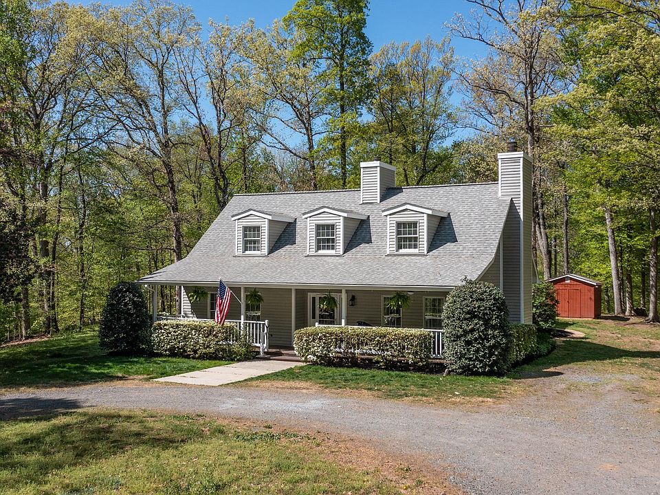 Peace, tranquility, and privacy await in this magnificent Cape Cod-style family home meant for you! Located on an 11+ acre wooded wonderland, enjoy wineries and a brewery within walking distance and observe wildlife year-round. Soaring ceilings and an eye-catching stone fireplace define the great room, while exposed beams and well-chosen light fixtures distinguish the kitchen. Fully renovated in a modern style, you’ll absolutely love the updated kitchen’s glossy granite countertops, undermount sink, double wall oven, and breakfast nook. Just off the eat-in kitchen area is a convenient home office which could also be repurposed as a guest bedroom. Next is a double-height dining room with wood stove and rustic pine ceiling, which will be the perfect setting for your holiday traditions for years to come. In need of a quiet moment? Step out onto the porch to gaze at the water well, bird feeder, and barn. The main floor’s two bedrooms share a well-appointed Jack and Jill bathroom (upd. 2020) and a half bath completes the main level. Taking either staircase up to the private master suite, you’ll find stylish wood beam details along vaulted ceilings, a wood-burning fireplace for cozy evenings, several window seats to follow the afternoon sun with a good book in hand, a wonderful walk-in closet to share, and another spectacular full bath. Attention and care have been lavished on all 2,196 sq ft of this home with fresh paint, faux blinds, light switches, tamper-resistant outlets, black hardware, new trim, and luxury vinyl plank flooring. For a full list of this property’s upgrades, request the Property Features & Upgrades Sheet from the listing agent. From the homey front porch to the freshly painted and sealed back deck with hot tub, the outside features are equally as impressive as indoors. Let’s take a tour of the four outbuildings with enormous potential... First, a huge barn that could become a gym, man cave, or Airbnb, with an upstairs loft that can serve as a bedroom, office or art studio. Park your vehicles and pursue your hobbies in the 3 car detached garage at the back of the property with attached shop: woodworking, storage, tractors, or a car shop would be well-suited to this space. Situated at the end of a private drive, enjoy the quiet lifestyle of your dreams in lovely Loudoun County. Steeped in history, the area is a veritable paradise for foodies, wine lovers, and outdoors enthusiasts. Connect with friends at Vanish Brewery’s restaurant or one of five other breweries in downtown Leesburg, or at the Leesburg Premium Outlets all within 15 minutes of the house. Launch your boat in the nearby Potomac, hike the trails at Piscataway Crossing Regional Park, and enjoy community events like the popular Air Show, Halloween parade, and the Flower and Garden festival. Find your happy place - view this property today!
