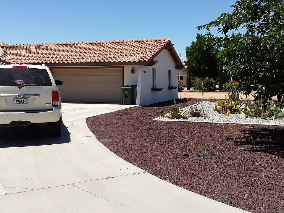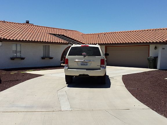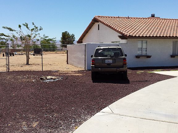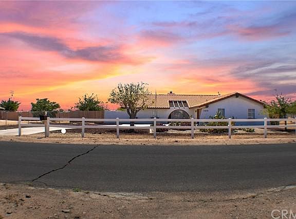 Well maintained, solid construction home in desirable area of Apple Valley located near schools, major shopping and the civic center. Enter the home through the courtyard into the foyer which leads to a large open living area with cozy brick fireplace. The formal dining area has a wet bar, and there's a half bath adjacent in the hallway that leads to the oversized 2 car garage with built in cabinets. This home is well situated for entertaining. The primary suite has a nice big walk-in closet and a private courtyard out the sliding glass door. The second and third bedroom are large and the guest bath has a fresh remodel. There are bare floors throughout and fresh paint. This huge nearly 1 acre lot is fully fenced, cross-fenced and has a new solid wood privacy fencing with double gates around back yard.