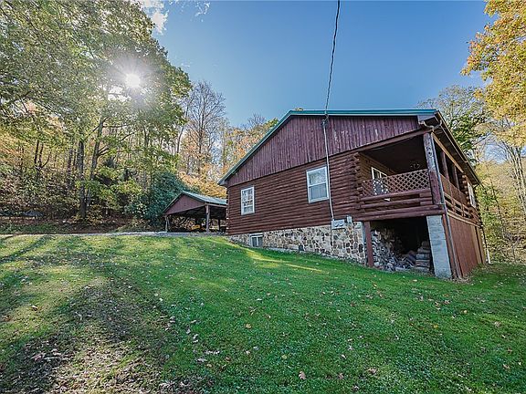 Get away from the hustle of life and homestead on your own small farm! A cozy 2 bedroom, 1 bathroom log cabin home with a large galley kitchen and attached dining area awaits you. The large living room as well as the bedrooms have original hardwood floors. The entire cabin has tongue in groove hardwood boards throughout. This home comes with 36 acres including 25 acres of private mountain hardwood forest. A covered springhouse hosts a natural spring and reservoir on the mountainside and provides plenty of fresh water for any livestock or extra projects. All terrain paths cut through the mature timbers. The property has several outbuildings with a large open-side pole building. A new metal roof has been put on the cabin, pole building and shed. The shed features a built-in chicken coop. Plenty of wildlife, featuring wild turkeys and whitetail deer will be roaming in your own hunting paradise.