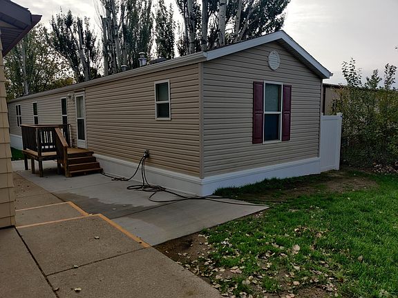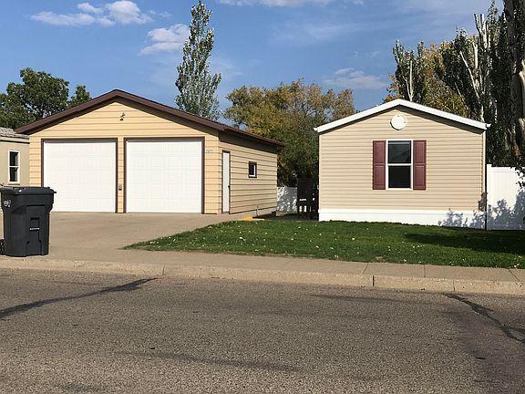 Nice 3 bed 2 bath mobile home on its own land (NO LOT RENT) sitting on concrete pillars. This home has an open floor plan with nice sized living room, kitchen with center island, master suite, two additional bedrooms, full bathroom, and laundry room with washer and dryer included. The exterior is partially fenced with maintenance free fence, insulated skirting, and a large double garage. The garage will be getting new garage doors and new shingles. Call an agent today for a private showing.