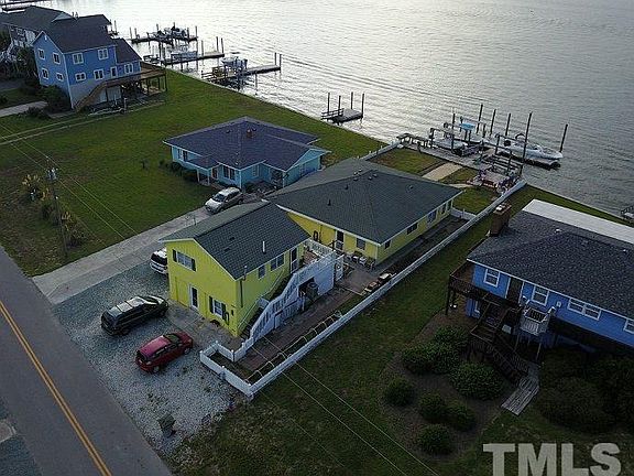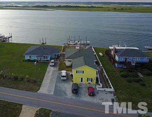 Single family, ground level home on deep navigable sound at Topsail Beach. 3 bedrooms, 2 baths, open kitchen, dining & living area. Property also contains a two story detached building with 1 bedroom, 1 bath, living area & deck upstairs & large storage and bath downstairs. Upstairs apartment is currently rented. Incredible sunsets, kayaking, sandbars and boating within steps! Property has boat lifts and boat dockage.