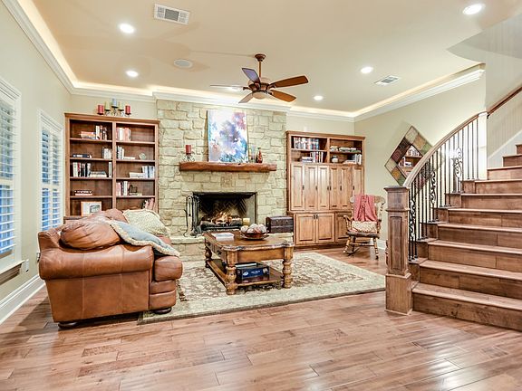 This elegantly styled, custom-built Travis Heights home features 5 bedrooms, 3.5 baths, and a spacious study. A unique guest suite includes a separate bathroom and a private entrance. Premium finishes and upgrades include: maple hardwood floors, gourmet island kitchen with built-in Kitchen Aid appliances, travertine bathrooms & showers. Windows are decorated with custom shutters and blinds. A gorgeous alder wood doors greet visitors upon entry on main floor. Huge lower level game room is accompanied by 2nd kitchen, and another large living area resides upstairs. Backyard amenities feature a beautiful covered deck with outdoor living area.