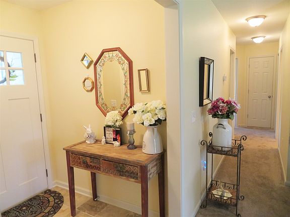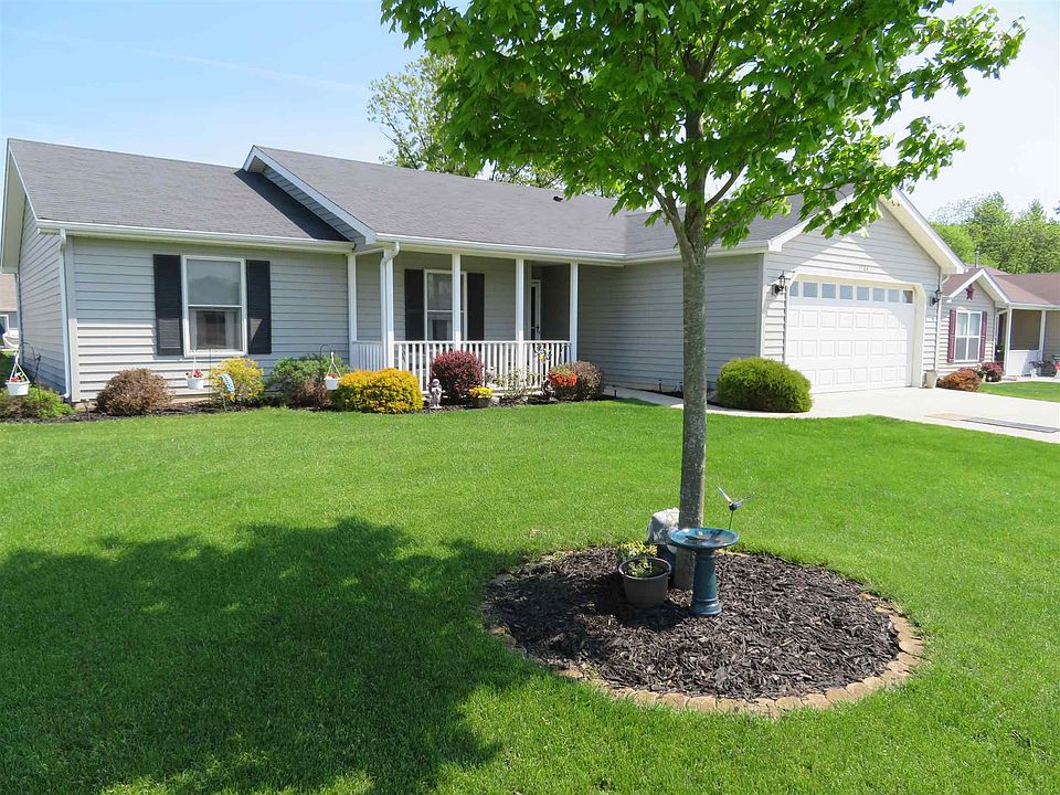 Move right in! This home has many nice updates. Updates include newer carpet, beautiful Corian countertops and hardwood flooring in the kitchen. All new soft close cabinets in the kitchen. 2 full baths with ceramic tile floors and soft close vanity drawers. Plenty of closet space throughout the home. Newer garage door and beautifully landscaped outdoors. Energy efficient windows, patio door and doors with very low utility costs. Come take a look at this beautiful move in ready home!