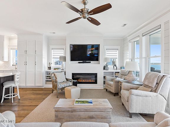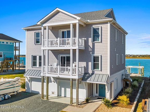 Perfect in every way! This nearly new home on Carolina Blvd on the S End of Topsail Island has it all. On a 60 foot deep water lot with 5 boat slips..........one of them is a 45 foot drive thru slip in addition to 3 boat lifts and another in water slip is a boaters dream. 4 bedrooms each with private baths plus an additional den on the middle floor gives room for family and friends to share time together. Double garage with abundant storage keeps your cars and water toys protected and a place to do your projects. There is a whole house generator with a 250 gal propane tank, a water filter system and an irrigation system for the yard plus total hurricane protection for doors and windows. And an elevator makes living easy. On the top floor, the views are sweeping from the covered deck. The open plan and generous space offers many options for being together and the outdoor space adds to that as well. The kitchen has plenty of counter space and the high end appliances are a chefs dream. There is a wine cooler and icemaker complementing the appliance selection. This property conveys furnished so you are ready to move right in and enjoy. Abundant parking is certainly a feature that will be appreciated as well. Properties like this don't come around often but this is one that the market has been waiting on! Home was built to Gold Level Fortified Standards with foamed and conditioned attic space for storage. Come see all this home has to offer.