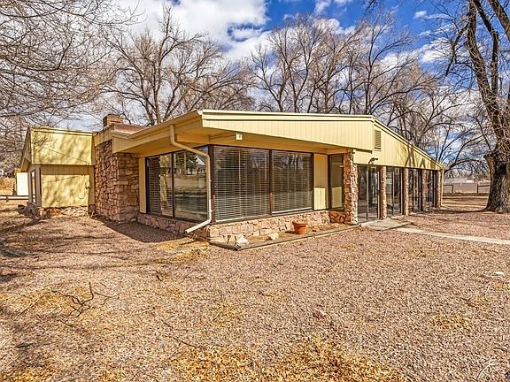 There is so very much potential for this .86 acre property/corner lot in Lincoln Park, w/ its almost 2000 sq ft rancher, and 6 shares of DeWeese-Dye ditch! Zoned Agricultural Suburban, a couple horses or a couple of cows are allowable. The home has 4 bedrooms, plus another large room with a half bath that could be an amazing primary bedroom with the addition of a closet or a stand-up wardrobe, making this a 5 bedroom home. Homey and spacious, there is plenty of sleeping and gathering spaces for your family and friends. The kitchen/dining room/living room combo is warm and cozy; and the sunken living room has a very efficient wood-burning stove set into a beautiful red-rock wall. There is large south-facing 3-season room with a brick floor with 6 sliding glass doors, ready for your summer furniture and flower pots! A mud room/laundry room entry faces the outbuildings and loafing shed, so when you are done feeding the animals or tinkering around, you can come in and kick off your muddy boots. Also just outside this mudroom is a classic clothesline. Important features of value: 3.5 years ago, the flat roof was removed and a brand new sloped roof was framed, new trusses constructed and roofing was installed; and Central Air was added 2 years ago. The two outdoor spigots are on city water. This home is move-in ready, but also has potential for some fresh ideas. And with a little sweat equity, your animals can be ready for their new home too! Schedule your showing today!