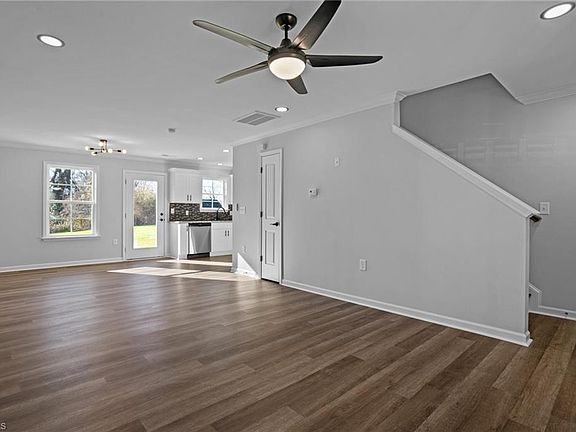 NEW CONSTRUCTION! MOVE-IN READY, 2-level home with a one-car attached garage. No carpet! Luxury Vinyl Plank (LVP) flooring throughout both levels. Granite countertops in kitchen and bathrooms. The primary bedroom features a 10-foot vaulted ceiling and recessed lighting. En suite primary bathroom offers a stand alone shower (with glass doors and tile), separate tub with an ample window for natural light and walk-in closet with elegant shelving. Step out to a 12x10 cement patio for outdoor enjoyment. The ample, cleared lot is your canvas. Convenience is key, 5 min drive to the IHFC, the hub of the Furniture Marketplace and High Point University. Don't miss this opportunity; make it yours today! 1506 E Commerce Ave next door (white vinyl) - same floor plan - also listed and move-in ready. Call GCS to inquire about School Choice Zone options.