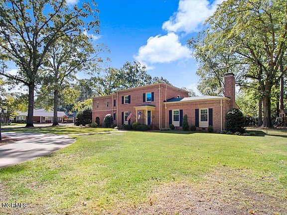 This charming and stately brick home located near the heart of Goldsboro features 4 bedrooms and 3 baths with an additional flex space for office, school room or bedroom. It also boasts a new master suite addition which includes 2 walk-in closets, a spa like bath which includes walk-in shower and a separate tub all complete with custom tile work and marble tops. This home has beautiful and original hardwood floors throughout, original hand made trim, and updated double pane vinyl windows that allow plenty of natural light. In the kitchen you will find beautiful custom hand made wooden cabinets with Ubatuba Granite countertops. Enjoy time in your family room with gas fireplace or head out to your spacious sunroom with original slate floors. Walk outside to your fenced in back yard complete with patio and outdoor fireplace. This home has many storage options including, multiple closets in the 2 car garage and throughout home, multiple shelves in laundry room and a floored attic space upstairs. Other unique and important features include an 8x12 storage barn, well fed in ground sprinkler system, updated electric panel in 2009, duct work and foam insulation in crawl space and attic added in 2010, new roof for main home in 2013 and new 1st floor roof shingle/metal in 2022. A ring alarm system can also convey.