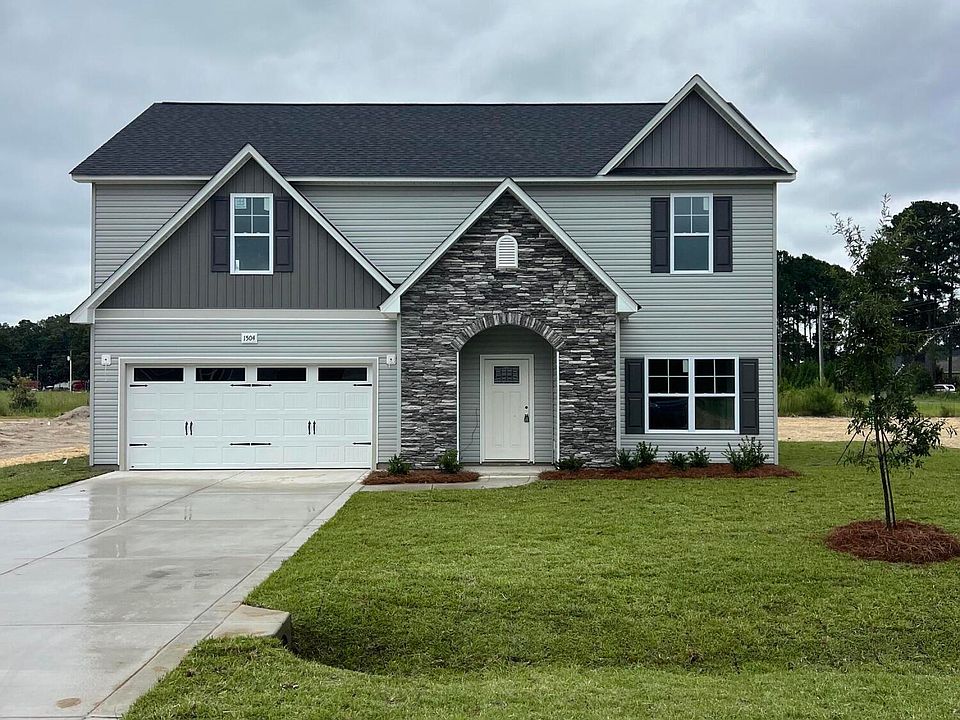 NOVEMBER MOVE-IN, NO CITY TAXES! Golf club adjacent community with 1 year Builder offered golf, tennis & pool access. This show-stopping new construction home has it all! The Hickory Plan Features a great room with electric fireplace open to the luxury kitchen equipped with a HUGE walk-in pantry, SS appliances, ceramic subway tile backsplash and Island for generous storage and prep space. The Dining area overlooks your backyard and opens to your coffee bar and SCREEN PORCH. This 3 bed, 2.5 bath home ''lives'' like a 4 bedroom, with a Bonus Room and Storage Closet. Upstairs you will find a primary suite with dual closets and vaulted ceiling, airy second floor laundry, and two spacious bedrooms + bonus room. Enjoy LVP on the main level and ''wet'' areas, Mohawk carpeting, quartz counters in baths & tile shower with soap niche. Modern Fixtures and Millwork. Included community upgrades: bedroom ceiling fans, painted garage, stone accent, 30-yr architectural shingle, backsplash, window screens, LED lights, trim. Baywood Terrace is located convenient to Highway 95 & 295, easy access to Base, Shopping, Dining. Highly coveted Cape Fear High School.