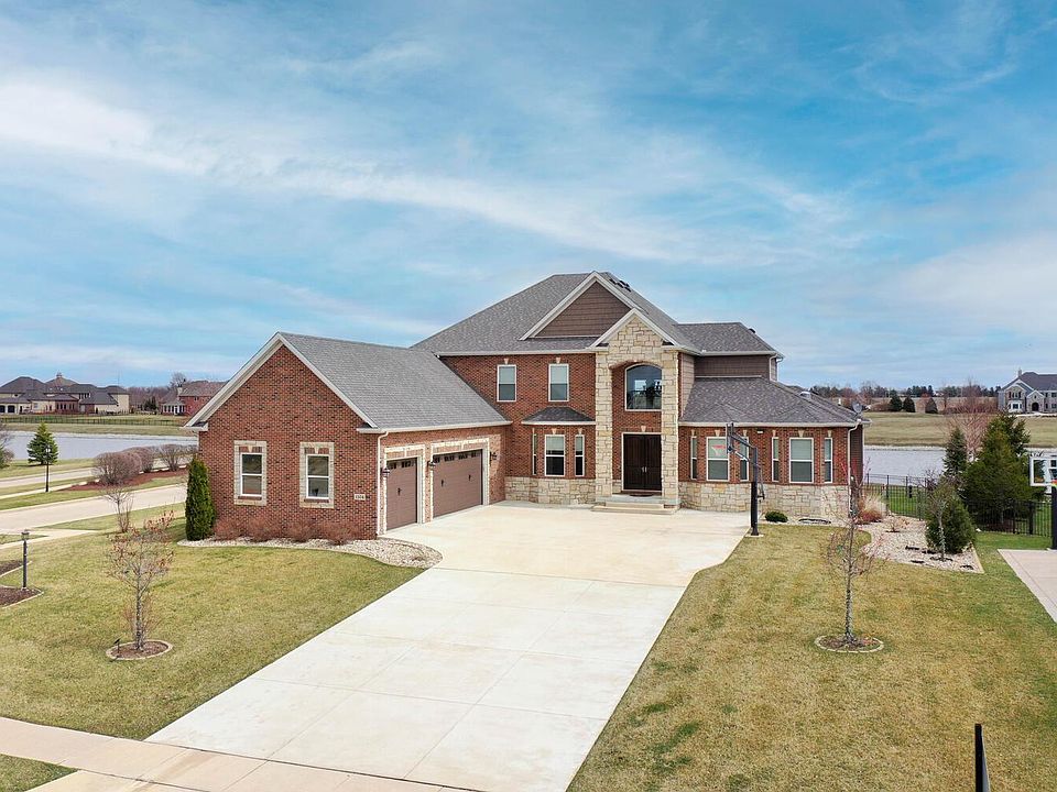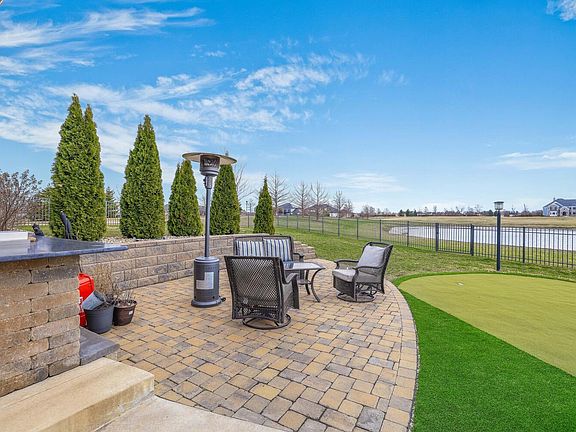 Designed to take advantage of the lake views, this pristine custom-built home will take your breath away. Situated on a corner lot in Trails at Abbey Fields, this home offers approx. 6,671 finished sqft, five bedrooms, five and a half baths and exquisite detail throughout. The abundance of windows creates a fabulous combination of light, air and space highlighting the beautiful hardwood floors that lead throughout the main level. The sun-filled 2-story great room boasts a coffered ceiling, floor-to-ceiling stone-front fireplace, and is open to the amazing chef's kitchen with custom cabinetry, granite countertops, stainless steel appliances, and a large walk-in pantry. Enjoy more views of the lake from the deluxe first-floor primary suite with a beautiful en-suite bath with your own washer/dryer closet and a large walk-in closet. Up the splendid staircase are three additional bedrooms appointed for comfort and privacy with their own bath en-suite and walk-in closets; and a designated washer/dryer closet for upstairs. The finished daylight basement is like no other and offers a large family/rec room and is open to the second kitchen equipped with a refrigerator, dishwasher, microwave & oven. The fifth bedroom, full bath, exercise room, and theater room PLUS your very own sports court complete the basement. The entertaining space is not limited to inside the home, host your gatherings outside on the back patio overlooking the partially fenced yard & lake while you BBQ on the built-in grill and practice your hole in one shot on your private putting green. Additionally, the house is also equipped with: an in-ceiling Sonos sound system throughout the house and patio, a Culligan RO system installed for clean drinking water, and Ubiquiti Unifi Wi-Fi system throughout the house for long-range wi-fi quality. This grand, gracious, and impressive home has all of the space you will ever need for living, working, and entertaining in style and comfort ... call today to schedule your private showing.
