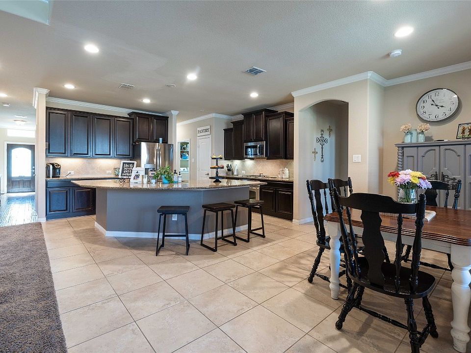 - Features: Breakfast Bar, Built-in Features, Kitchen Island, Pantry, Stone Counters, Walk-In Pantry