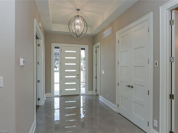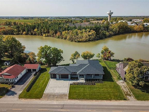 Brand new luxury custom built 2400sq ft bungalow sitting on a huge 133 x 131 lot with expansive views of the Four Mile Creek Pond. This home is extremely solid and well built. No expense spared on this high end open concept home featuring high gloss kitchen, top end appliances, walk-in pantry, great room with indoor/outdoor fireplace, dining room, bright, spacious foyer with porcelain tile, hardwood throughout. Large master bedroom with well appointed master bathroom and walk-in closet. Two further bedrooms (one could be a great home office), luxury bathroom and 2 piece washroom along with large mud/laundry room leading to the attached oversized triple garage completes the main floor interior of this home. The huge basement is awaiting your ideas. Outside is a 40 foot long covered composite wood deck to the rear taking full advantage of the water view. Landscaping, irrigation, covered front porch and triple wide interlock drive and paths complete this beautiful home.