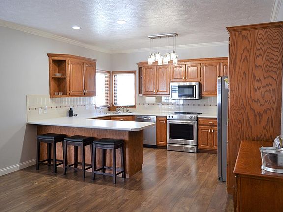 Move right in to this beautiful 4 bedroom, 3 bath ranch style home with open floor plan, full finished basement plus over-sized 3 car garage. Kitchen offers stainless steel appliances with brand new microwave. Master bedroom has gorgeous remodeled, master bath with walk-in closet. Large main floor laundry room (washer & dryer included) that combines as an office which leads to large 3 car heated garage and ample storage. Basement is finished with 2 bedrooms and a full bath along with family room that has wet bar and pool table. Fenced in backyard with deck, patio and hot tub which stays. Extra parking pad.