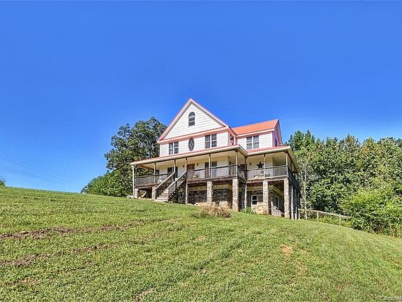 Country living at its best. Sit on the wrap around porch and look out over trees and rolling hills. Privacy in a farmhouse with a metal roof, wide slatted pine wood floors on first and second floors, tile in the kitchen and bathrooms, and a few perfectly placed stained glass windows. Full basement with 2nd laundry room. 4 beds/2.5 baths with dining room, office, kitchen, and laundry on first floor. Master bedroom and other bedrooms on second floor. Plenty of space in large, walk out basement for pool table, man cave, or whatever you can imagine.