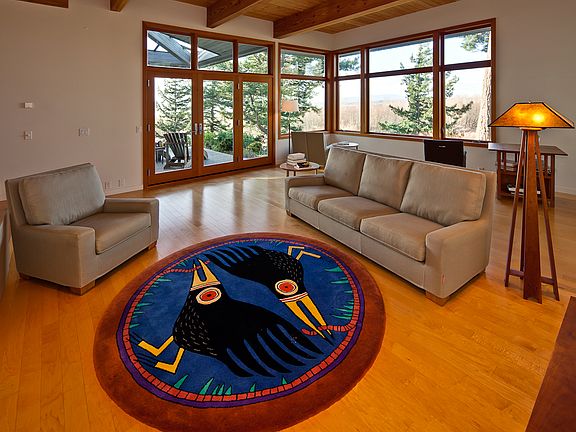 4 1/2+ acre custom Pacific Northwest designed home and exceptional privacy! This home features the highest quality of details such as imported stone, granite, cabinetry and wooden beams as well as hardwood floors, 2 fireplaces, large den/office with custom bookshelves, living, family and dining room, Miele appliances throughout and master suite with walk-in closet and spacious bathroom. Views of the Bay and Nooksack River!
