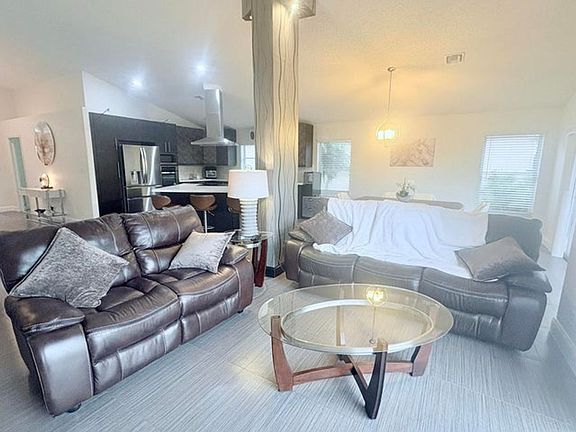 Courtesy of Kirsten Kopp Real Estate Redone open floor plan house, with 3 bedrooms and 2 bathrooms, boasting a screened patio as well as an outdoor patio ideal for barbeques and enjoying the sunsets, located in one of the most desirable neighborhoods just 7 mins away from all equestrian venues. Kitchen has new appliances, new cookware, a large island and includes a wine refrigerator.