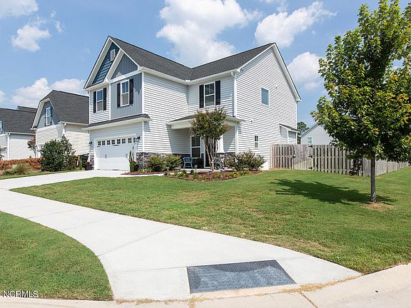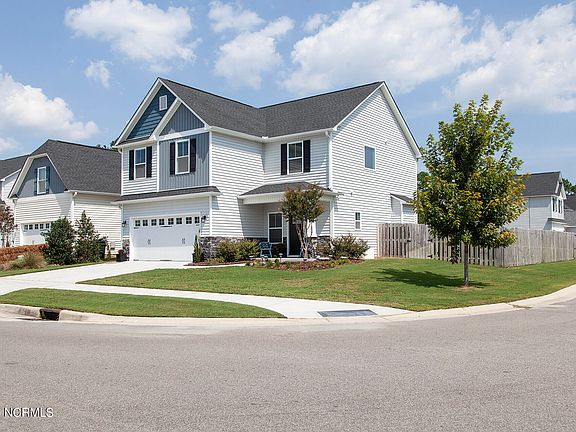 Move-in ready home with only one owner that didn't hold back on high end upgrades. The Craftsman Trim Package gives an elegant look and feel to the open concept living area with 9 foot ceilings. The gourmet kitchen is equipped with granite countertops, stainless appliances, beautiful island, LGT kitchen cabinet lighting and a large pantry. Upstairs you will find 4 bedrooms, 2 full baths and the laundry room. The primary bedroom has an ensuite bath with upgrades of dual vanities, soaking tub and a walk-in shower. There is plenty of storage with large closets everywhere. Enjoy relaxing or entertaining in the great room in front of the fireplace. Sitting on an oversized premium corner lot with a fully fenced back yard with front and back irrigation system is why the yard is so beautiful! With a 2 car garage and a Smart Alarm System, this is your home sweet home within minutes of Wrightsville Beach, Mayfaire dining/shopping and Historic Downtown Wilmington yet just outside the edge of the city limits.