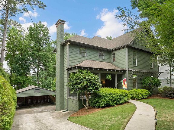 Rare Find in Walkable Edgewood! Covered parking and deep, oversized backyard set the stage for this move-in-ready charmer with 9 ft ceilings & hardwoods throughout both levels. The kitchen features marble counters, a gas range, breakfast bar, and opens to a cozy keeping room. French doors lead to a screened porch overlooking a backyard perfect for entertaining! Main-level primary suite boasts two walk-in closets and a spa-like bath. Upstairs: 3 bedrooms, 2 full baths, and a spacious den. Downstairs: den with fireplace, full bath, walk-out patio & backyard retreat with play area, basketball pad, and storage building. Garage accommodates one car with extra depth with a workbench. Bonus: x2 laundry areas, front wall waterproofing, and massive attic with finishing potential. Recent updates include sewer line (2023), exterior paint (2021),  kitchen cabinets painted (2021), fridge, DW (2023) landscaped backyard. Homes like this rarely hit the market—schedule your showing today!