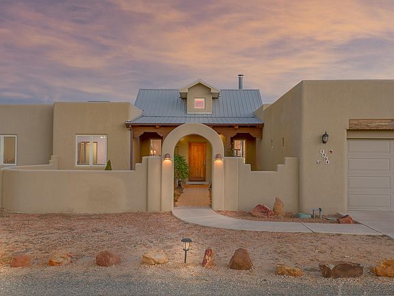 Nestled on a quiet cul-de-sac, this BEAUTIFUL home is situated on 1 FULL Acre and features a huge 1500 sqft shop. The low maintenance front courtyard pops with color in the springtime and throughout the summer. Enjoy breathtaking views of the Sandia Mountains from the backyard, primary bedroom, living room and even the dining room. This open floor plan is perfect for entertaining or take the party outside with the built in outdoor grill. This home features an oversized attached garage, PLUS an incredible detached workshop - store your RV, cars, or toy. The Instant Hot water system services the entire home. Media Room is ready for the true Audiophile, with a prewired storage closet closet (access from the Laundry Room) stores equipment.