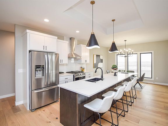 Exquisite attention to detail & superior finishes in this new construction home built by Copper Creek Construction, an industry leader in design excellence. Stunning picturesque Anderson windows highlight the open floor plan of this sprawling ranch walkout! A transitional modern aesthetic is carried all through the home. Living room adorned with a luxurious tile gas fireplace & gorgeous wide plank white Oak floors spanning throughout the main floor living spaces. Kitchen boasting Bullseye cabinetry, quartz countertops, a large island, spacious pantry & more! 3 spacious main floor bedrooms including the primary hosting a private en suite with a convenient pass-through closet to the laundry/mud room. Entertain with ease in the family room perfectly set up with a cozy fireplace & convenient wet bar. 2 additional bedrooms & a full bathroom complete the lower level. Garage is oversized & includes heat, drains & hot/cold water. Sod, sprinkler, rock & edging included in list price.