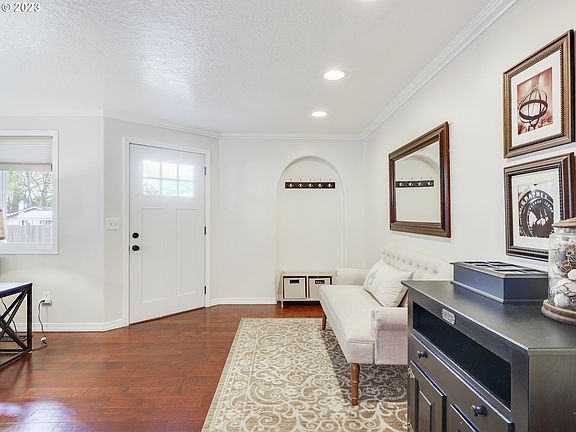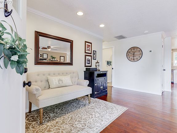 Wonderful one-level home in north Newberg! As you enter the home you'll notice the great room that is open to both the spacious kitchen and the dining room, all with hardwood flooring. Large kitchen with island and updated appliances. Huge primary suite w/ full bathroom, walk-in closet and French doors leading the lovely backyard. Dreamy backyard with fantastic deck, fire pit area and play structure. New a/c! Brand new roof! Located just 3/4 of a mile from downtown Newberg. Enjoy close proximity to George Fox University, Newberg Library, Cultural Center, coffee shops, dining and wine tasting!