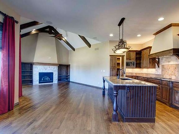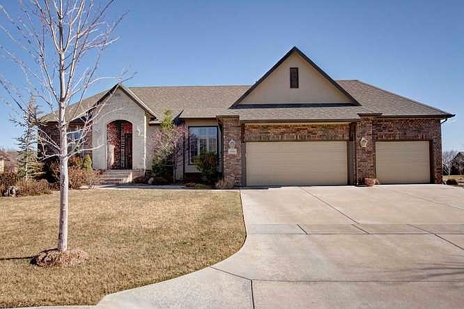 OPEN SUNDAYS 1-5!! Fabulous inside and out! Built in 2008 by Masterpiece Homes this home shows pride of ownership, maintained exceptionally well and almost shows like new!! Entering thru the foyer into the formal living room with floor to ceiling windows overlooking the deck with an eastern back yard exposure wonderful for those summer evenings! Main floor offers a split bedroom plan, 1/2 bath, large open inviting kitchen with angled family room, eating space in the kitchen as well as the bar and yes a formal dining area as well! This home offers many sought after features such as a walk-in pantry, vaulted ceiling in family room upstairs with gorgeous wood beams, knotty alder woodwork, surround sound, his and hers closets in the master suite offering off-season hanging space within each closet, vessel sink in 1/2 bath, stone fireplace surround upstairs with built-ins to house your t.v.and other decorative collections. Within the kitchen area you will find double ovens...a must for those large family gatherings, a gas cook top, soft close drawers, custom built hood, pull out trash container, granite counter tops, built in shelving for cookbooks, a lazy Susan and various other features for a well equipped kitchen. Don't forget to take note of the dynamite "drop zone" as you enter from the garage with the adjoining laundry room, great place for all the kids stuff! Working your way to the basement what a great entertaining place provided here. Spacious family/game room area, gas fireplace, wet bar and an abundance of windows that lets in all of the natural light. At one end of the basement you will find two large bedrooms with a shared bath between the two. At the opposite end of the basement you will encounter a large room that could be used for many things..office, exercise room, home theatre..take your pick. Could be used as another bedroom if needed as there is egress with daylight window well but no built in closet. Large corner lot, Sedgwick County Taxes, Andover Schools! OPEN SUNDAYS 1-5.