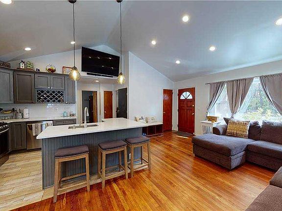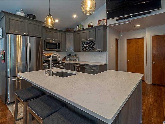 Beautiful 3/1 Ranch With Fully Renovated Kitchen Complete With Quartz Countertops, SS Appliances, And Large Island! Open Floorplan, HW Floors, Brand New Hot Water Heater! Finished Basement Offers A Large Amount of Storage, New Washer/Dryer, And Outside Entrance With Bilco Doors! Large Flat Property, 1 Car Detached Garage, Incredible Deck For Entertaining! Taxes Only $6643.59 Before STAR! STAR Amount Is $797.81!