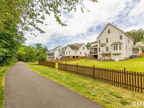 Enjoy the HUGE >1/4 acre private, flat, fenced back yard of this updated & custom built home on the Apex walking trail! NEW gleaming hardwoods & fresh paint on the 1st floor! Sunny cook's kitchen boasts NEW granite & NEW stainless appliances! Park-like views from the family, kitchen & breakfast rooms! LARGE secondary bedrooms & 3rd floor could be teen suite! Stroll tree-lined sidewalks to the community pool with diving board/tennis/basketball! Oversized garage! Crawlspace w/7ft ceilings could be workshop.